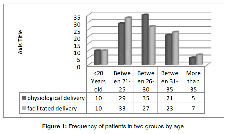 A total of 200 pregnant women candidates for natural delivery in two groups of physiological delivery and facilitated delivery were included in the study. The average age of the physiological delivery and facilitated delivery groups was 26.37 ± 5.23 years and 26.58 ± 5.79 years, respectively (P=0.788). Also, the physiological delivery group had 35 mothers in the age range of 26-30 years, and the facilitated delivery group had 33 mothers in the age range of 21-25 years (P=0.788) Figure 1.